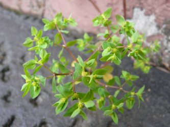Einjährig, aufrecht, kaum bis sehr stark verzweigt, bis 30 cm hoch. Stängelblätter verkehrt-eiförmig bis rundlich, kurz gestielt, etwa 0,5–2 cm lang und breit. Hüllblätter der Teilblütenstände eiförmig, in eine vom Mittelnerv gebildete Spitze auslaufend. Blüten (gelblich-)grün. Kapselfrucht mit 6 Längsleisten, je 2 davon dicht zusammen an der Rückennaht einer Fruchtklappe. Blütezeit: Juni–Oktober.